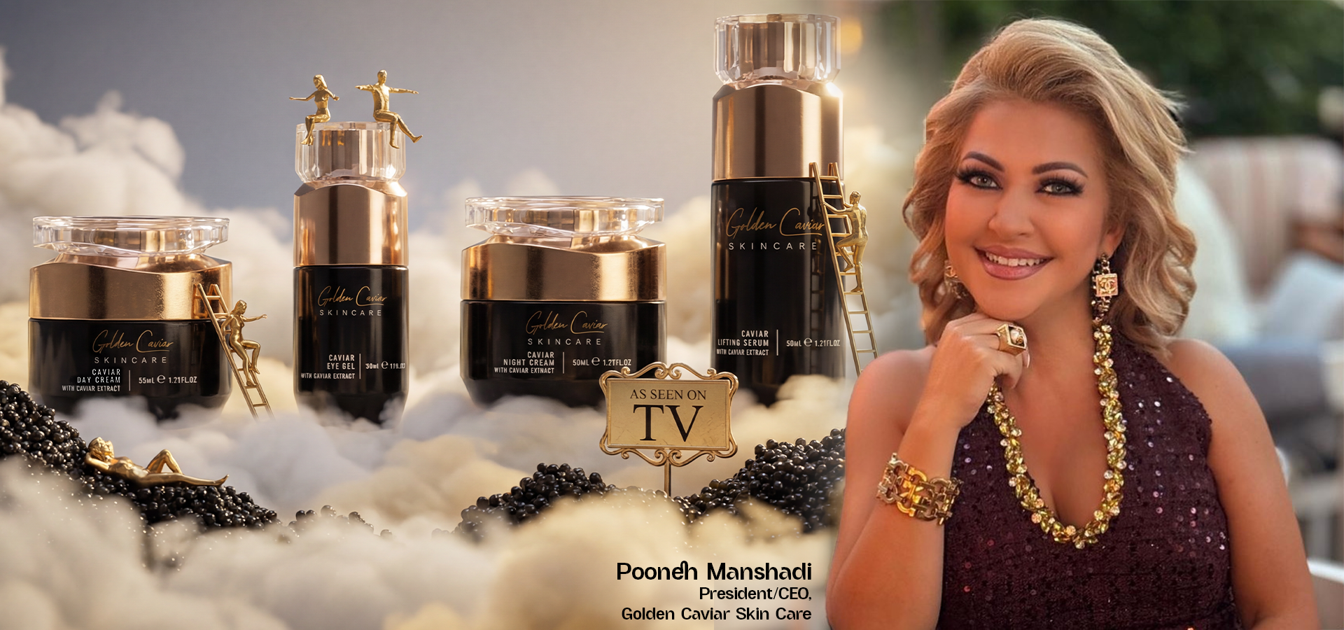 In 2001, Pooneh established Golden Caviar Skin Care, she believe that the only way to look good is to feel good, to take care of your body inside and out. Each technologically advanced formula is based on years of research by top experts in the field of dermatology, aging, nutrition and stress management. Caviar was the solution to many skin issues, especially Anti-Aging!